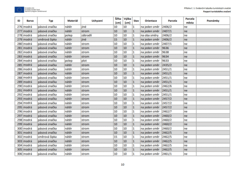 Stručný obsah pasportizace turistického značení: