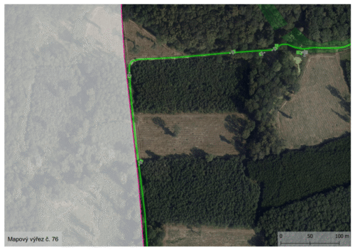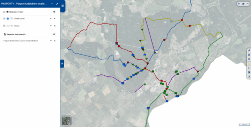 - Sdílení vybraných prvků a jejich atributů s veřejností (např. vizualizace značek v podobě linií doplněných o související prvky)